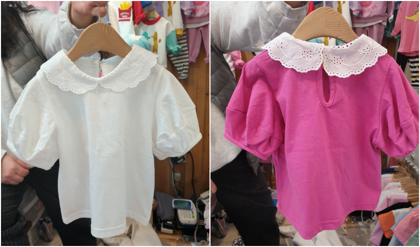 基本款版型+素色,配上一點點雕花鏤空領子點綴!配裙子或褲子都好看喔~
