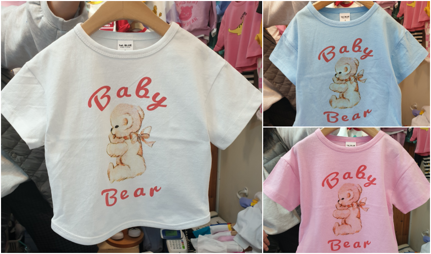 衣服圖案設計很有巧思,像這件小熊T的帽子就是立體的呢~比印花更有質感!