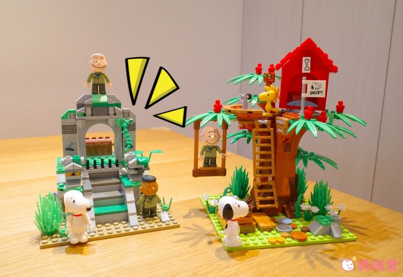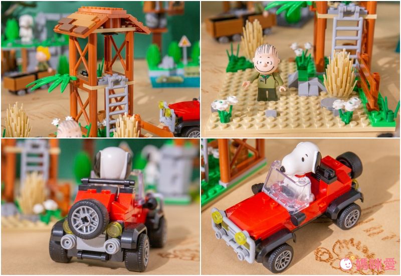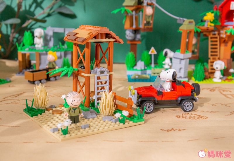 史努比叢林探險系列總共有 7 種款式,從吸睛的史努比樹屋,到冒險吉普車,造型很豐富。組完後的積木還有小機關,讓孩子每次玩都有新的樂趣!