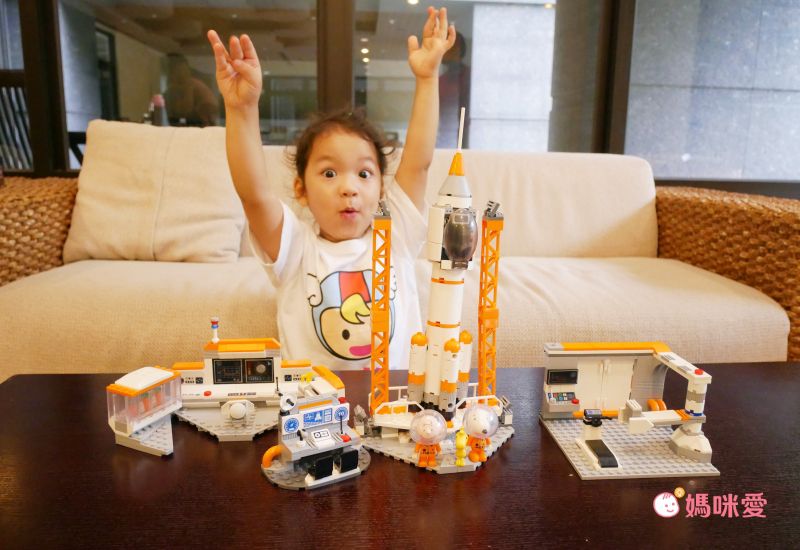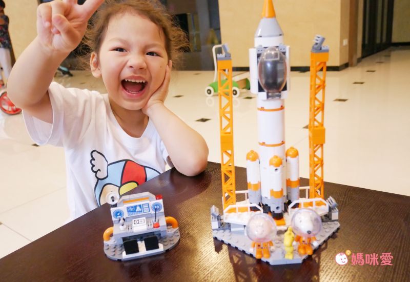 1. 火箭發射站:太空人登向宇宙的經典場景完美積木化了!在書上看過這場景的姊姊看到盒子上的圖案就超級興奮,馬上要求要先組裝這一組!