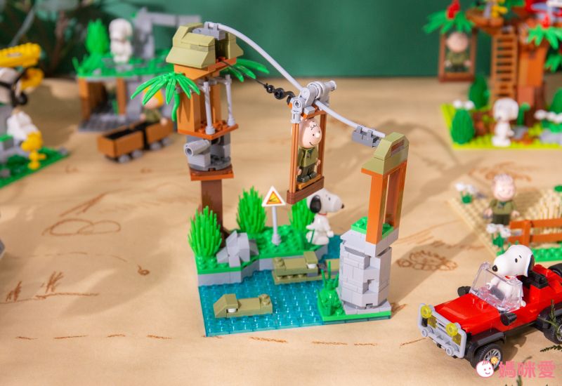 史努比積木-叢林探險系列讓孩子和可愛的史努比與查理,開著飛機和吉普車,到叢林展開神秘的冒險,尋找失落的寶藏!