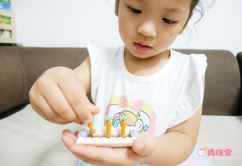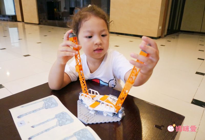 自己認真地看研究圖解說明書,裡面有很多細緻的小零件,剛好磨練姊姊的耐心。編媽先教 Tete 姐姐怎麼看手冊,第一步先找出需要的積木,第二步再看圖放到正確的位置。