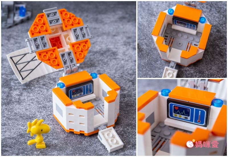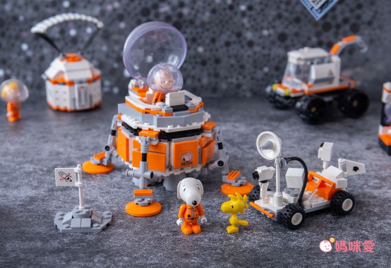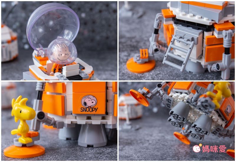 配合太空主題,史努比和朋友們也穿上了太空衣,超級可愛~氧氣罩是可以打開的唷!人物表情看似幾筆簡單的線條,但都有一定的比例,如果買到不是正版,拼完可能會發現臉怎麼長得有點奇怪,正版授權的每一組小人偶都長得非常可愛,設計精細,表情和小細節都有表現出來唷!