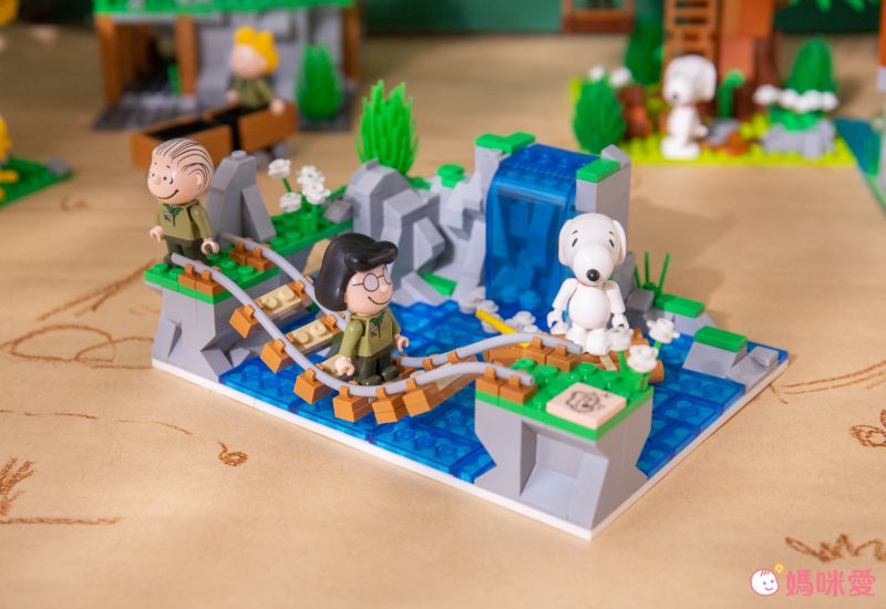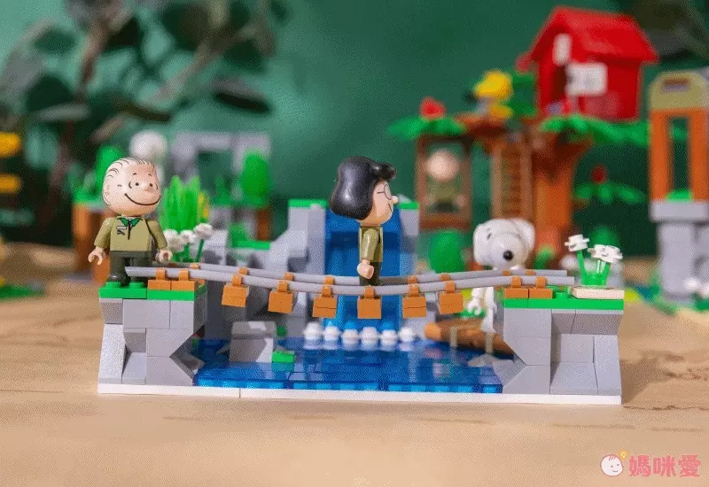 這組的特色是有一艘可愛的獨木舟!還有船槳可以讓史努比和朋友們拿著滑啊滑~吊橋的終點有一張藏寶圖,可以讓寶貝找找看神秘的寶藏被埋在哪裡?