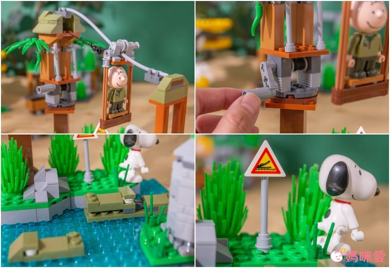 5. 勇闖鱷魚潭:這組的機關超有動態感!動手轉一轉,讓史努比和查理乘坐梯子,安全穿越鱷魚出沒的河流!