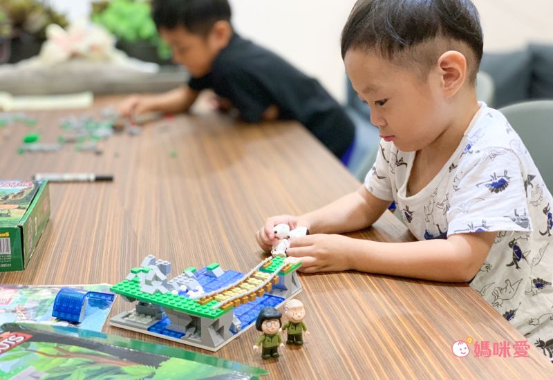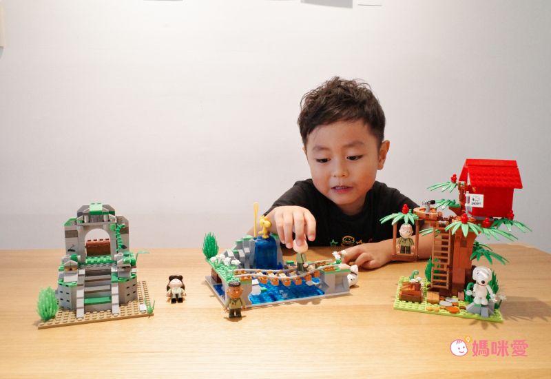 找了一個午後和兩兄弟一起組裝積木,圖解說明書很清楚,小秘訣是把同一盒的零件放在盒子裡,需要的零件再挑出來,這樣分工很快就能完成任務,開始叢林探險啦!