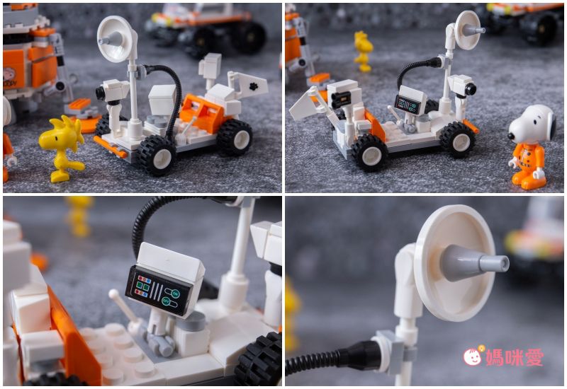 探測車上的電子面板,還有探索儀器也做得很到位,忍不住想滑著探測車找找哪裡有寶藏,這組積木完成之後就是現成的太空玩具超讚啊!