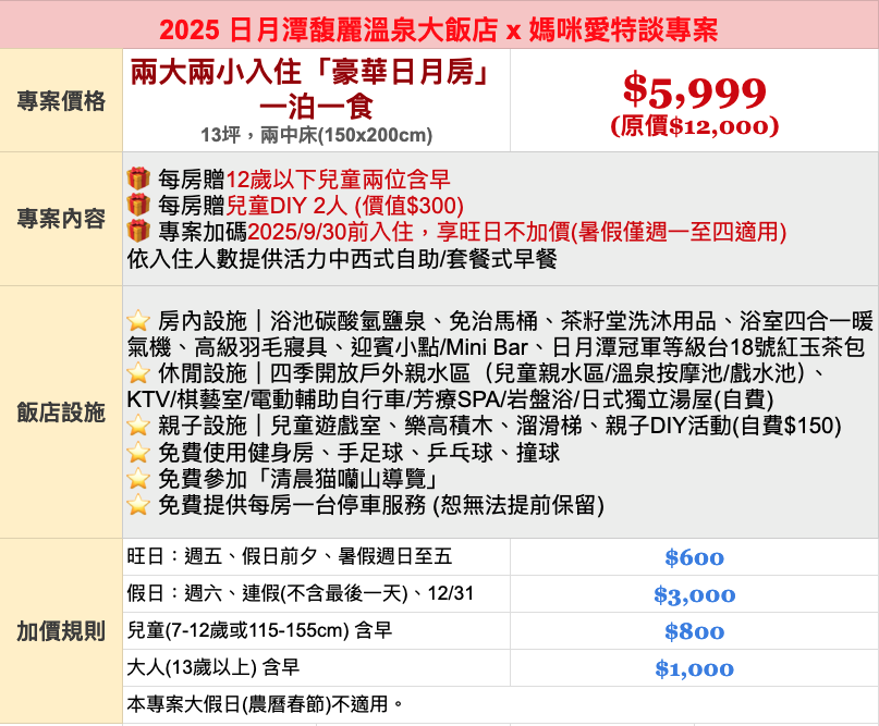 註:專案加碼2025/9/30前入住,享旺日不加價(暑假僅週一至四適用)。