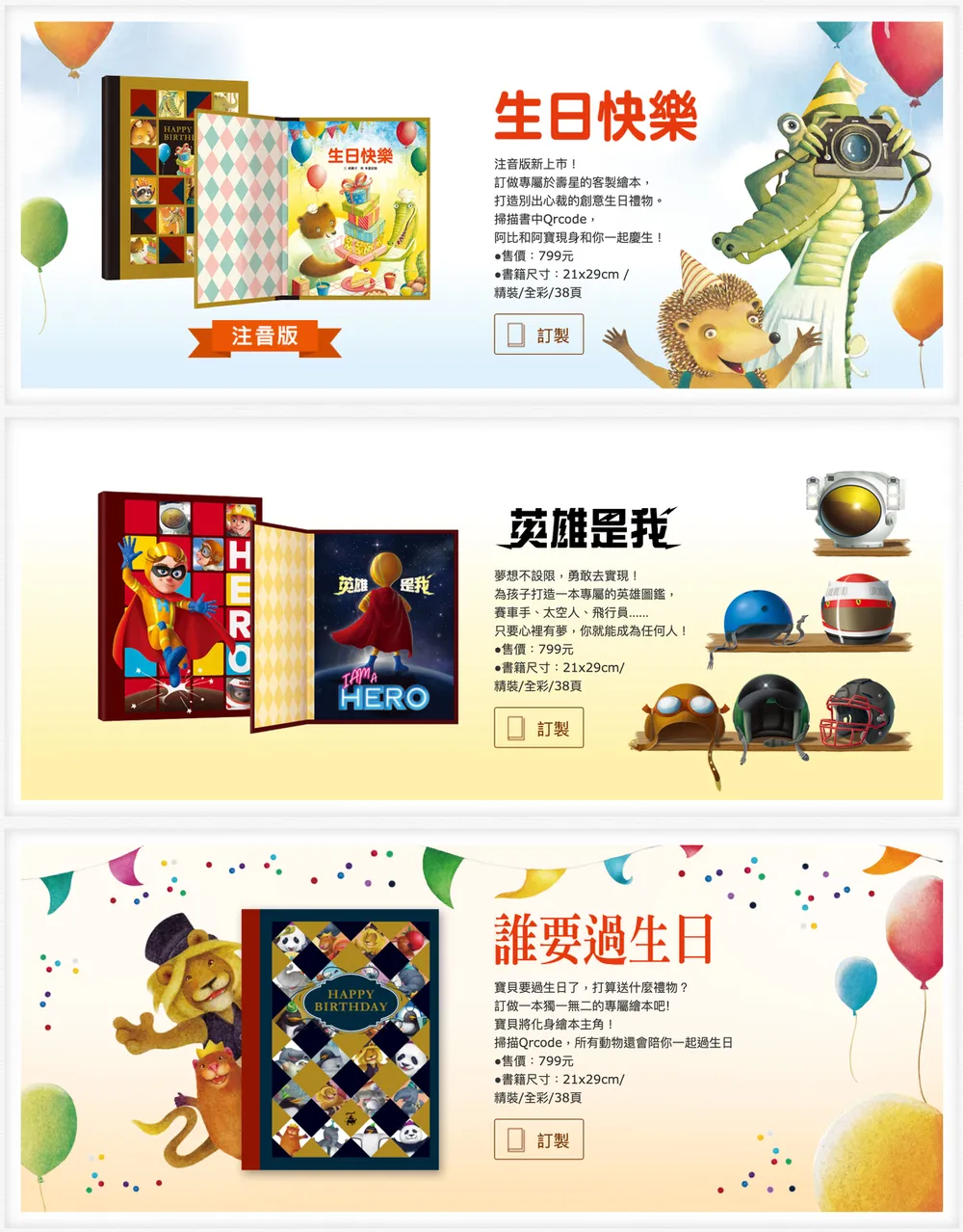 格林文化推出的這兩本,特別力邀了國際級插畫大師朱里安諾(Giuliano Ferri)、米列娜(Milena Jahier)繪製,是全台唯一以獨一無二的客製化概念推出的繪本。《誰要過生日》、《生日快樂》這兩種主題也新增了注音版本可供選擇!