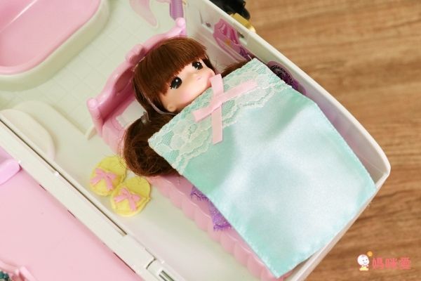 這款是 4 歲半小蜜的最愛!一拿到小蜜就迫不急待地幫「公主」洗香香、換睡袍、蓋被子睡覺。他還幫她取了名字叫『明明公主』一邊演戲一邊自己發明各種情境,其實也是在自言自語,哈!