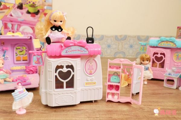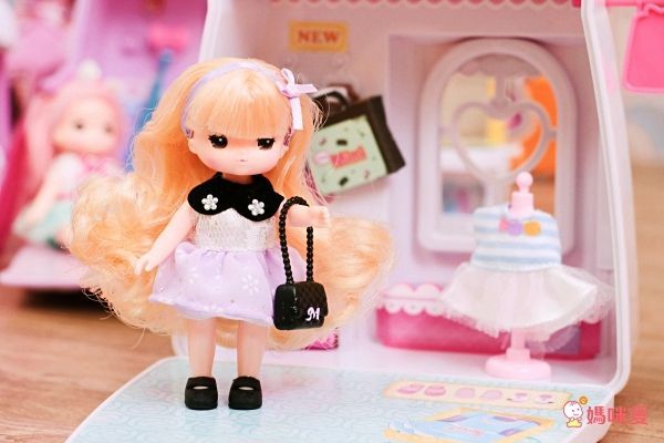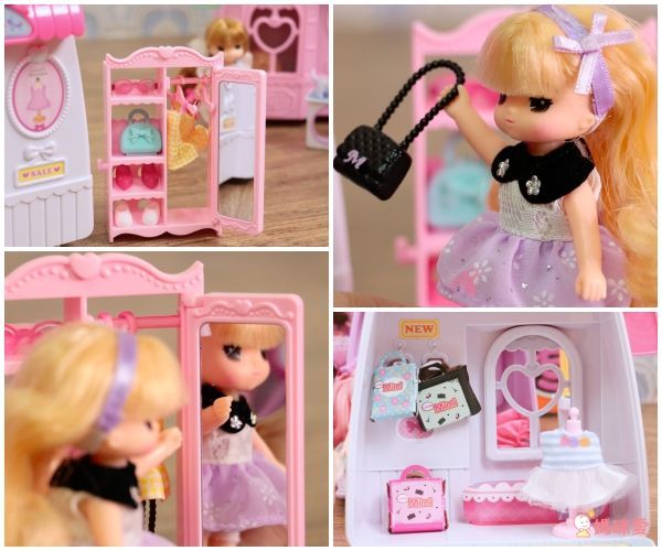 他除了當作服飾店,小蜜也會把它當作小 MIMI 的家,她很專心的幫小 MIMI 穿衣服和整理頭髮,然後在 MIMI 專屬的連身鏡仔細檢查服裝,真的可以照鏡子這一點我覺得加分不少呢!