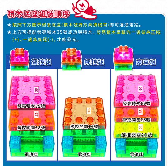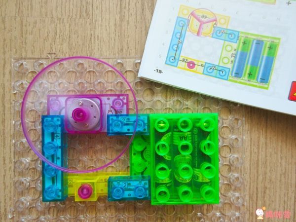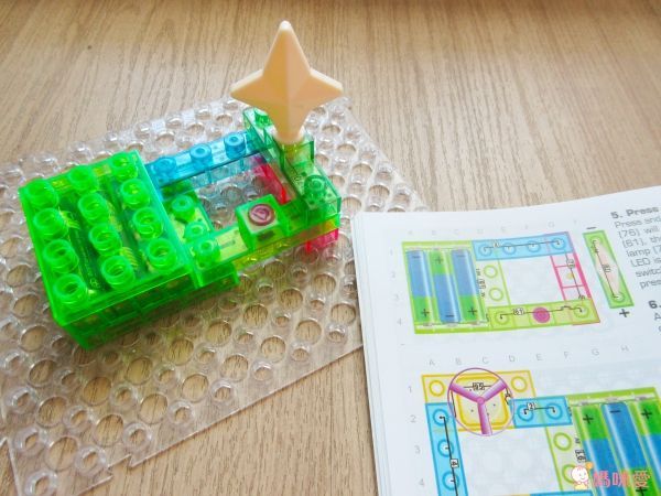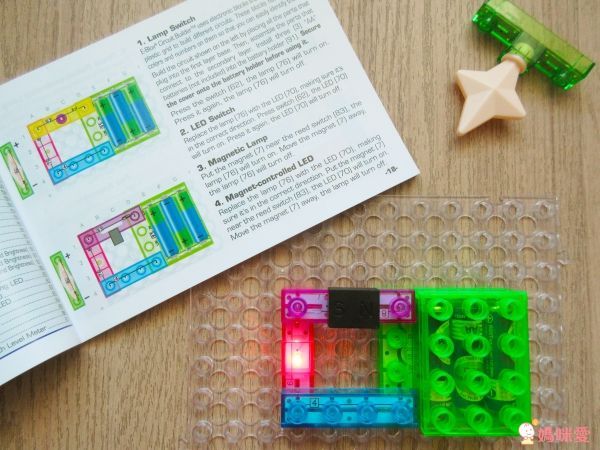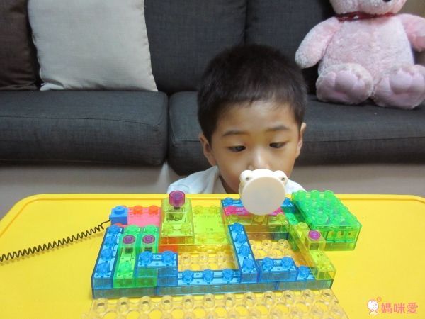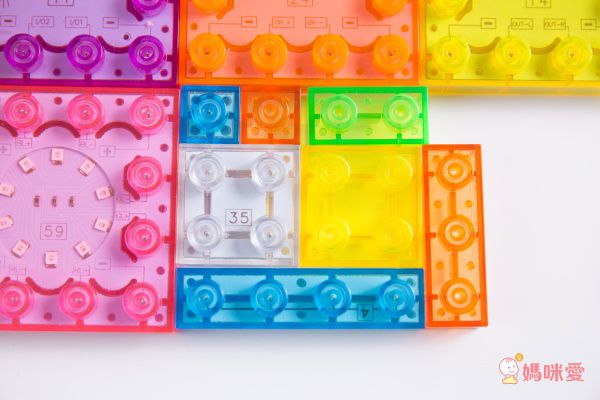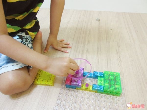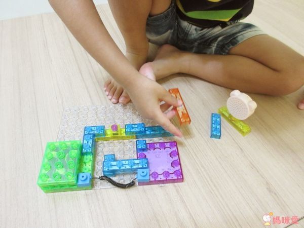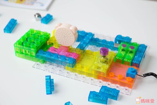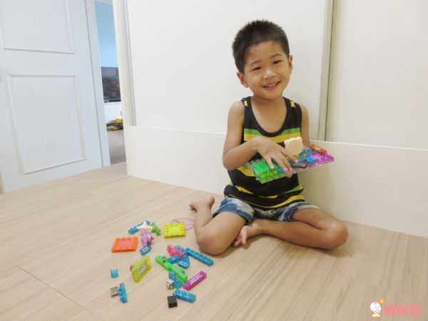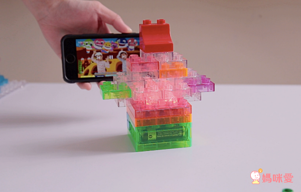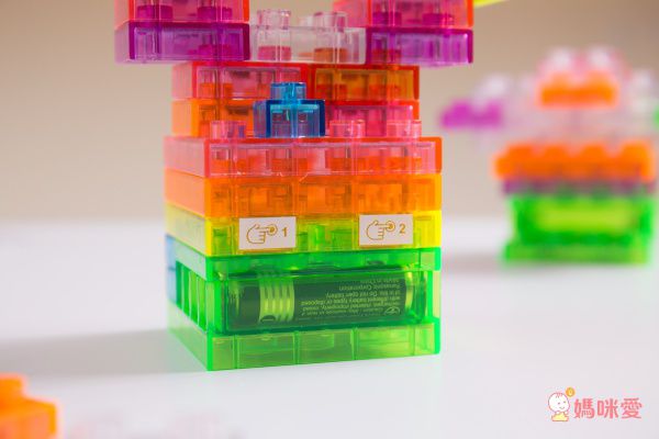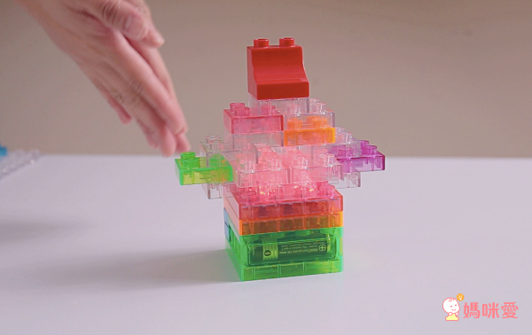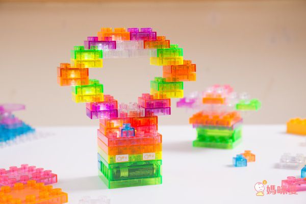按照基本的步驟裝好底座和開關,其他的發光積木、透明積木可以讓孩子盡情發揮、探索