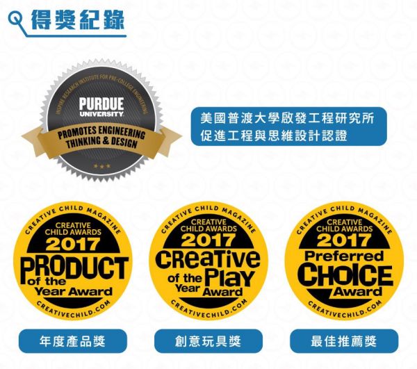 【美國 E-Blox】全能益智聲光積木不僅獲得美國普渡大學啟發工程研究所的認證,更獲得創意玩具、年度產品、最佳推薦等獎項唷!