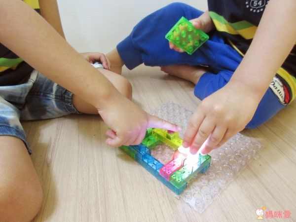在拼組積木的過程中,能夠培養孩子的邏輯和觀察力,有可能會小小的失敗,拼錯了積木不會發亮,但可以藉此機會教育,鼓勵孩子繼續嘗試,越挫越勇!