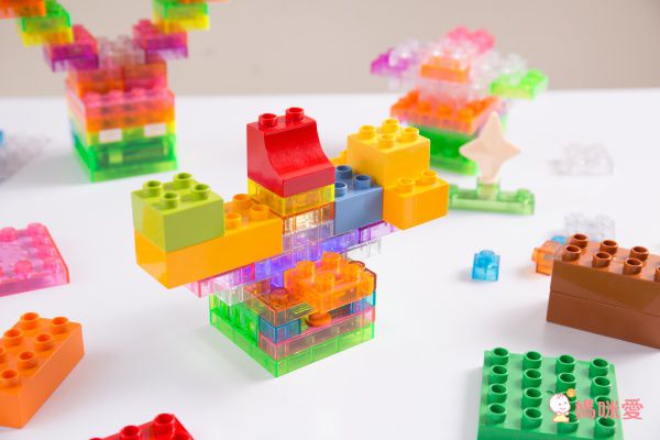 讓孩子動動小手,嘗試用發亮&透明積木蓋出各種作品!