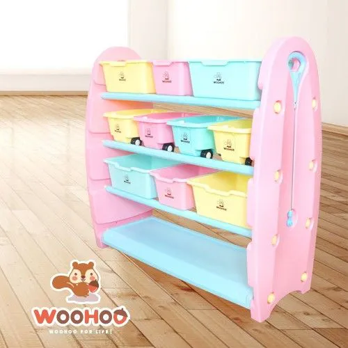 媽咪想說再這樣下去也不是辦法,如果讓收玩具變成一件好玩的事,兩個搗蛋鬼對於收納的意願就會提高了吧!在美樂蒂媽咪貨比三家、精挑細選、千辛萬苦,終於找到了【WOOHOO 兒童玩具收納櫃】,不只好收納,還好看又好玩!