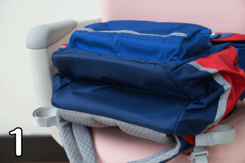 媽咪可以幫孩子看一下,書包兩邊高度有沒有一致。如果沒有,再調整肩帶下方的帶子長短,讓兩邊是一樣高的。