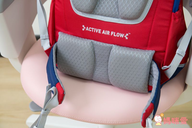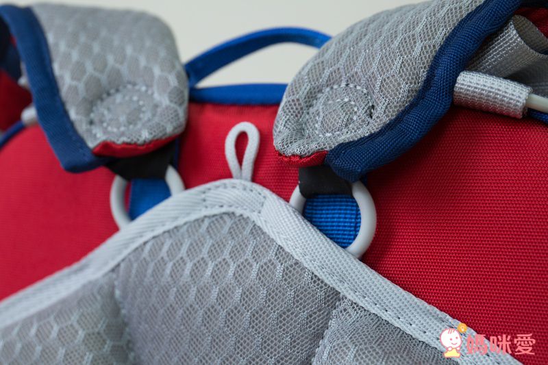 跟背部、腰部接觸的部分,以及整條肩帶,都是網狀的智能透氣墊,夏天用起來比較不會汗流浹背,孩子才比較背的住。