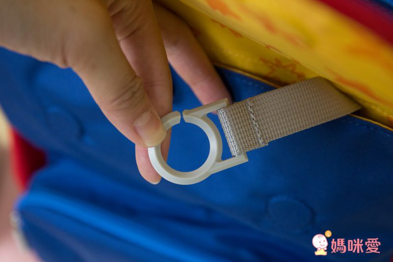 腰帶的帶子要記得拉緊,才能充分達到分散受力的效果唷!(跟大人背背包是一樣的道理,因為比起肩膀,身體的核心軀幹腰部是更有力的,也因此可以達到更輕鬆的背負)
