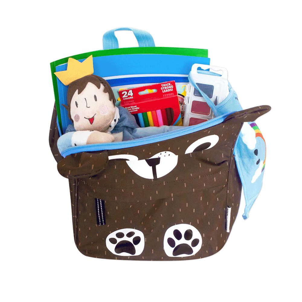 超深的側袋,就是水壺和雨傘的家啦~而且背面有貼心姓名標籤、背帶也可以調,就是能陪寶貝一起長大的包啊~