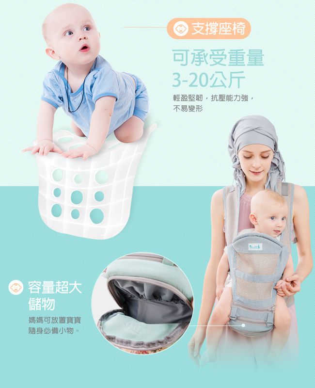 10個月快10公斤的阿承,已經是愛玩好動的年紀,最愛到處看看~長時間揹著一定媽媽手QQ有座椅輔助,才能幫媽媽分擔肩膀的壓力。