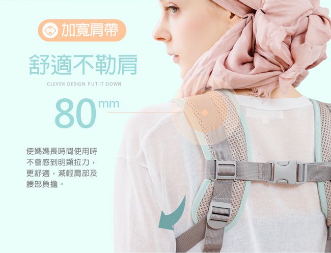 有寬版的軟墊肩帶,讓爸媽的肩膀得到舒適的支撐承重。