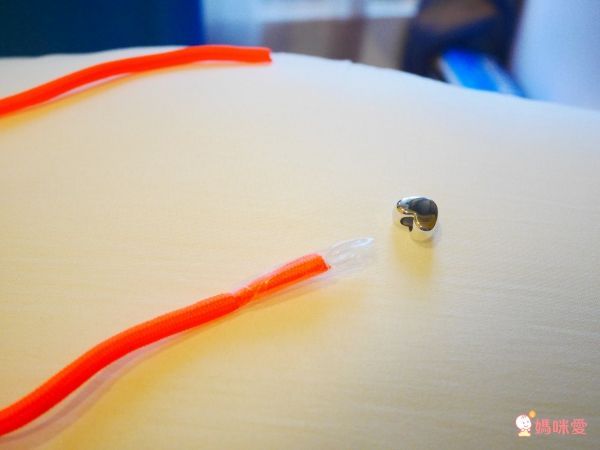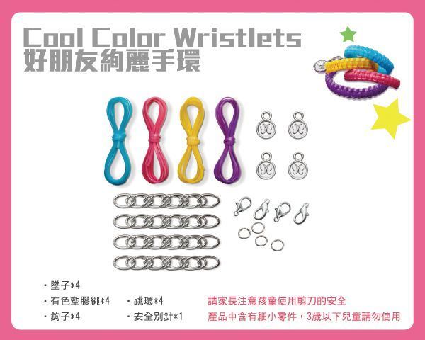 裡面有附「安全別針」按照說明書上說的,拿一顆枕頭過來就可以編手環囉~XD
