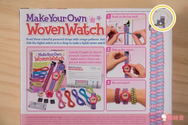 雖然這款手作編織錶帶標明適合八歲以上的兒童,不過哪有被蕾蕾逃過的機會(笑)一看到可以做屬於自己獨一無二的手錶,蕾蕾就說媽媽做!我覺得只要孩子能完成簡單任務一樣可以玩,因此由我完成大部分錶帶製作囉!