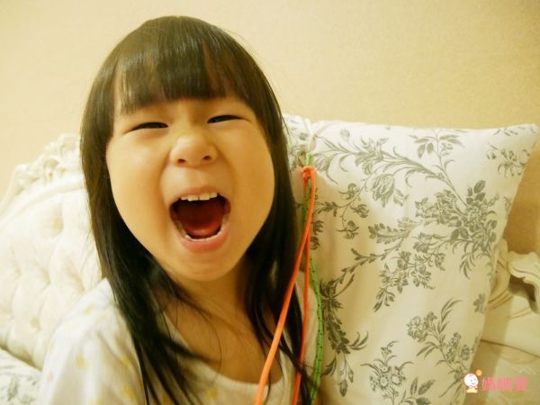 由媽媽我先編好錶帶,讓蕾蕾自己動手將電子錶穿過錶帶。成就感能夠大大提升孩子對事情的熱情和動力,不需要強迫他們做超過能力範圍的事情~大人完成錶帶部分,孩子完成最後穿洞部分,合力完成一件事情的感覺很棒!