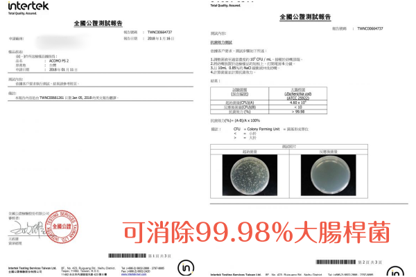 採用獨家紫外線消毒,通過全國公証檢驗,殺菌力達 99.9% !可抑制大腸桿菌、金黃色葡萄球菌及減少霉菌生長。