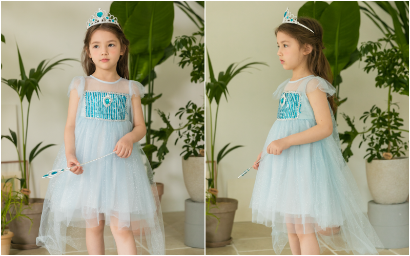 冰雪藍的經典選色,還有夢幻的前短後長設計,每個設計都符合女寶對冰雪女王的浪漫幻想~