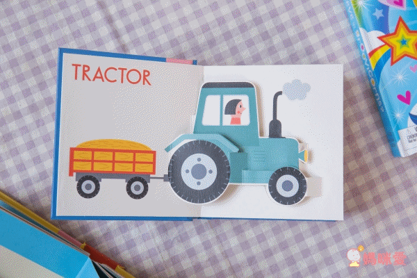 不只是像平常一樣玩車車,這車車書可以讓小朋友在玩樂、閱讀中,認識拖拉機可以做些什麼事情呢!