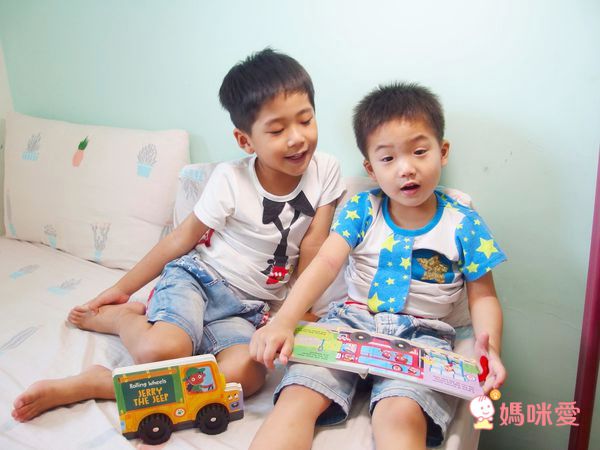 兄弟倆從小就有閱讀的習慣,這次開箱的童書全部都是色彩豐富、操作有趣的車車遊戲書,大小寶看到簡直是樂歪了,每天回家都吵著要看車車書呢!