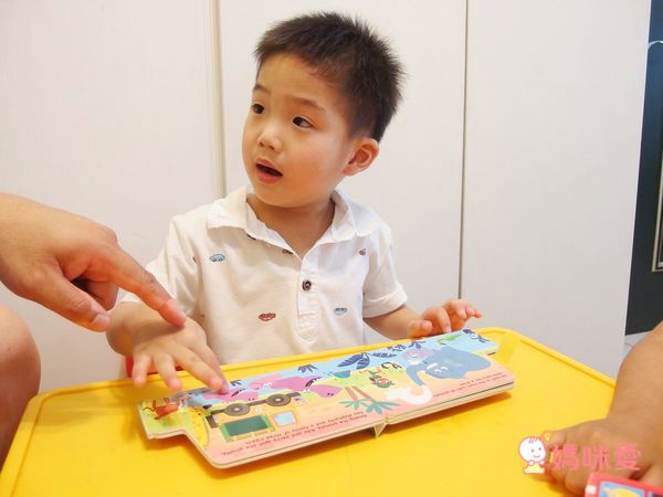 跟著拔拔一起親子共讀並學習小動物們的英文名稱及數字,庭弟弟學習力大爆發,還會一直反問拔拔。