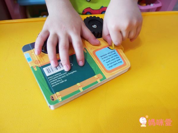這兩本英文書是車車書,車輪立著可以站起來喔!首先介紹男寶界一秒就被吸走的車車外型操作書,我家這兩隻寶看到時眼睛為之一亮,立馬拿來嚕嚕看,其實就成功一半囉!