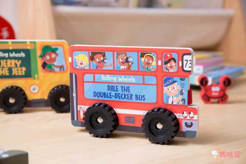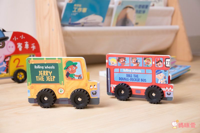 我的第一本輪子書不只是書,看完闔上就變成孩子最愛的玩具車車,充滿童趣的造型厚紙書,一開始就吸引雙寶的目光了!