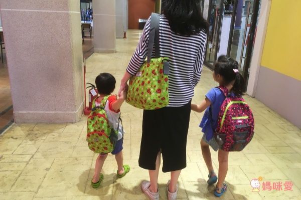 包包容量很大可以收納 A4 大小的書籍,裡面沒有夾層,但外面除了有一個很深的拉鍊袋外,多一個網袋設計+黏貼式雙釦環,可以固定或擴充收納空間,對於大小孩來說使用更具機能性!