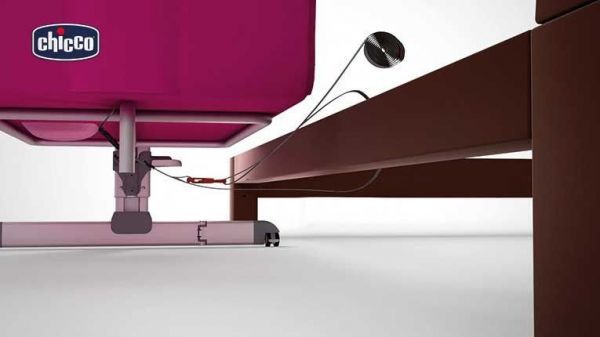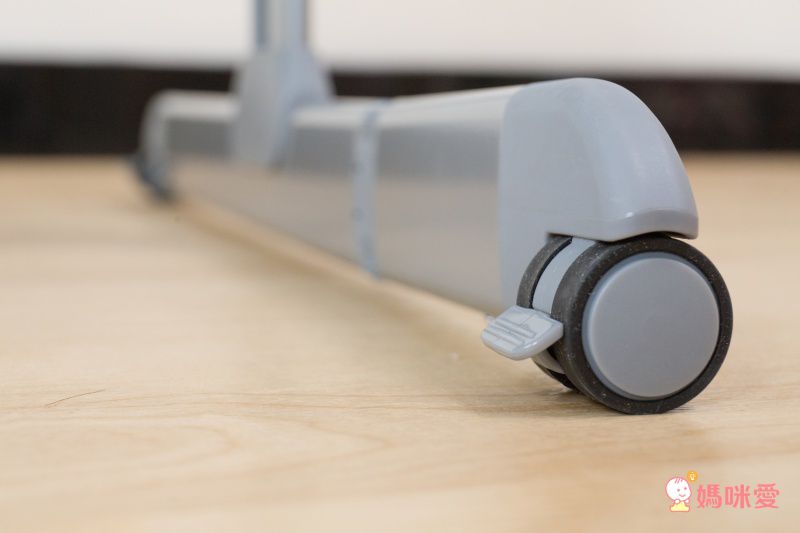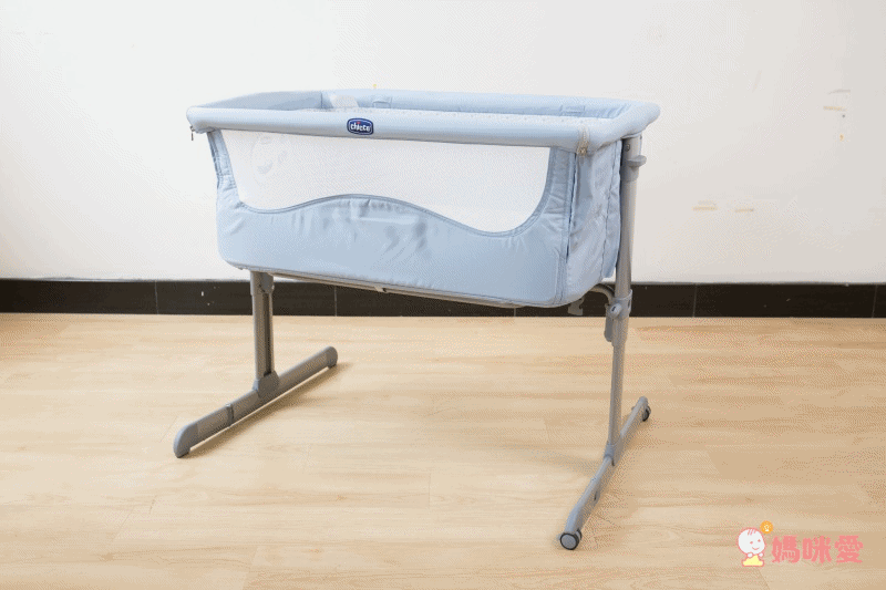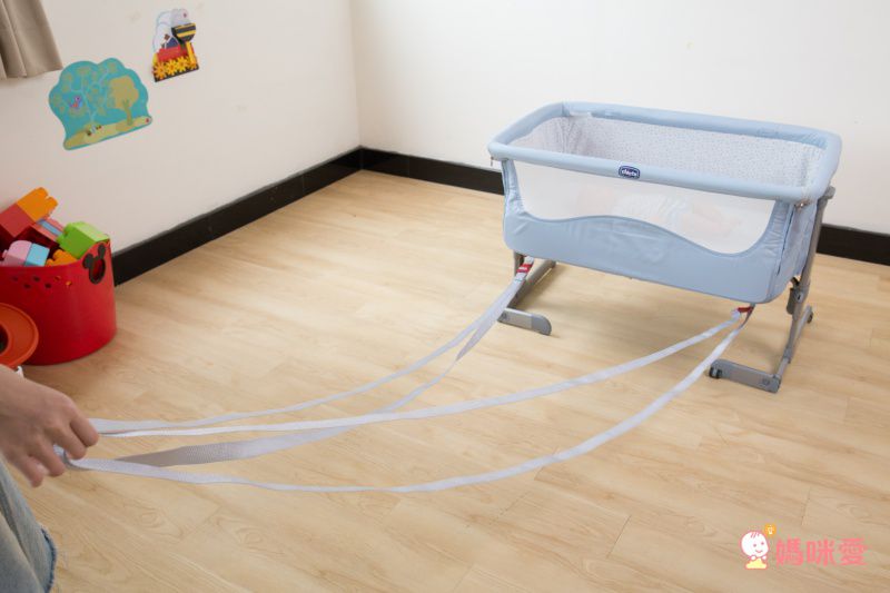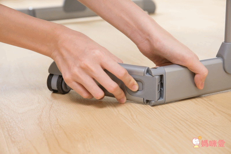 底部附有隱藏式輪子,不易刮傷地板的安全輪方便移動,拔拔麻麻可以用單邊提起的方式,移動小床到家裡任合角落,移動完畢後,可使用輪子上的安全固定鎖扣,固定小床避免滑動。