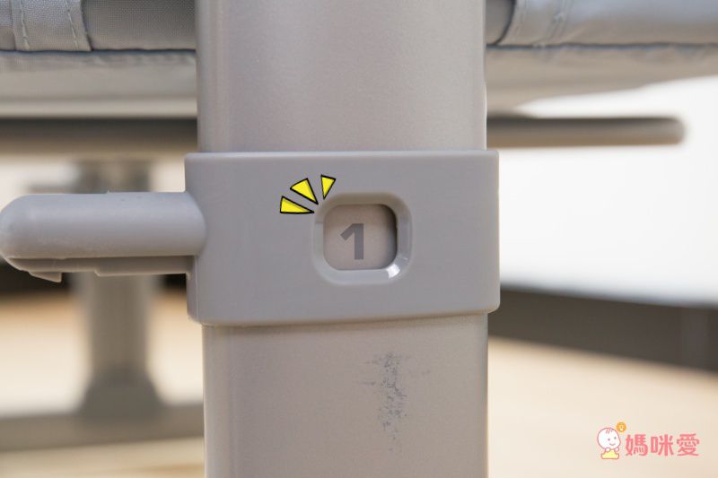 床角上有數字標示,數字越大代表升的越高,讓媽咪可以方便辨識現在的高度:)