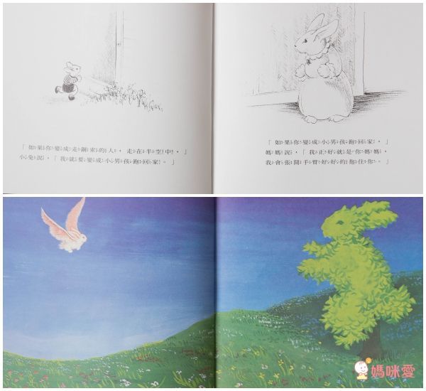 小兔子一會兒變成高山的大石頭、一會兒又變成小花,但無論他跑到天崖海角,兔媽媽永遠都是他的避風港,成為孩子的後盾、支持著!