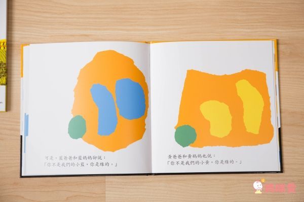 回到家後,他們的爸爸、媽媽認不出小藍和小黃,他們傷心地哭了,小藍和小黃到哪兒去了呢?在書中可以看到裡面的插畫,真的就如同手撕般的呈現,但即使是這樣抽象的插畫,也能完全被大人小孩所理解,小藍和小黃就像是被賦予了生命一樣,閱讀中可以感受到他們的開心、難過呢!