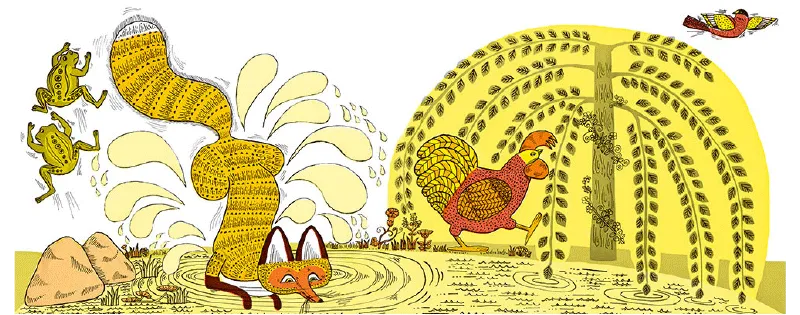 《母雞蘿絲去散步》是本懸疑、逗趣、機智的故事!母雞蘿絲昂首挺胸出門去散步,在她背後,有一隻文字裡完全沒有提到的狐狸偷偷跟在後頭。雖然書裡只用少少的 40 多字,敘說一隻母雞出門散步的過程。但圖畫卻大大超越文字的描述,把母雞被狐狸跟蹤、狐狸卻老是撲空的情節,生動呈現出來~看似完全狀況外的母雞好像快被狐狸抓走了,但最後卻安全逃過一劫呢!