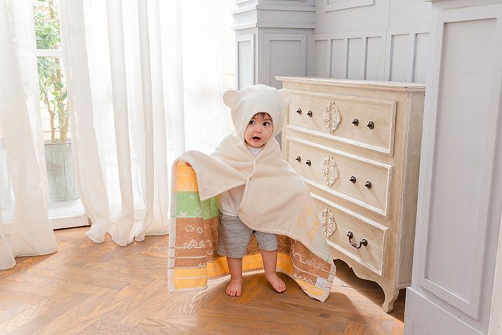 100%純棉觸感極佳,超可愛的熊耳帽剛好先把濕漉漉的頭髮擦乾,大大片的浴巾可以把身體整個像披風包裹起來~就不怕剛洗完澡容易著涼感冒啦