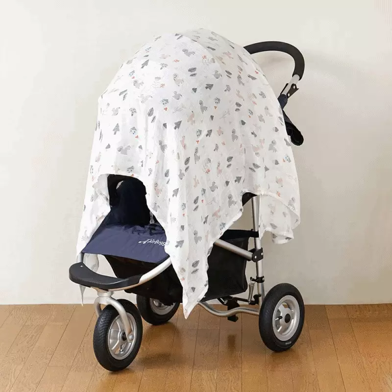 一樣除了包巾之外,也能當作哺乳巾、推車遮罩、蓋毯等使用,用途非常多!