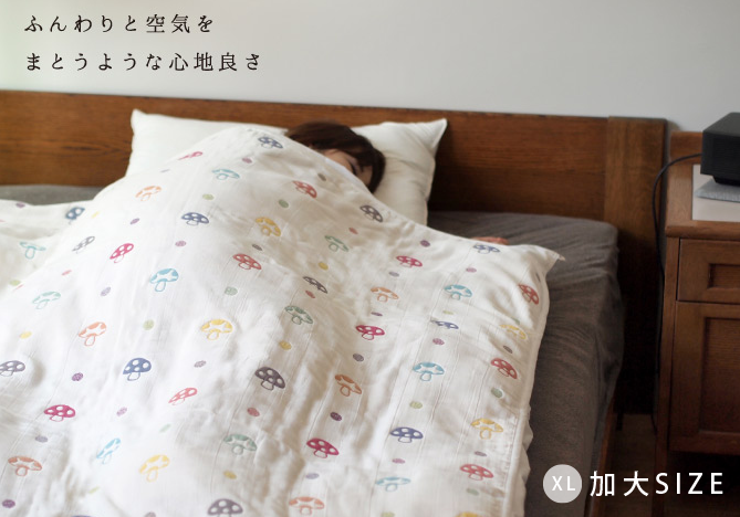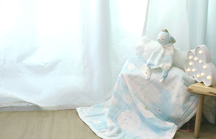 六層紗織法的特性:透氣性、吸濕性佳。用了100%天然日本棉,會越洗越柔軟、蓬鬆,穿在身上或是蓋在身上,也更舒適囉~(洗滌時記得使用洗衣袋喔)