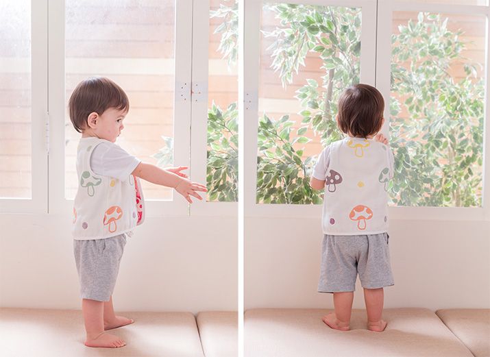 人家說:「囝仔屁股三把火」,因為寶寶體溫比較高,睡覺總愛翻來翻去,常睡一睡也滿頭大汗,萬一踢被被感冒就糟了!不過防踢背心就像「踢不掉的被子」,有保暖透氣快速排汗的特性,四季穿著它,媽咪就不用擔心囉!