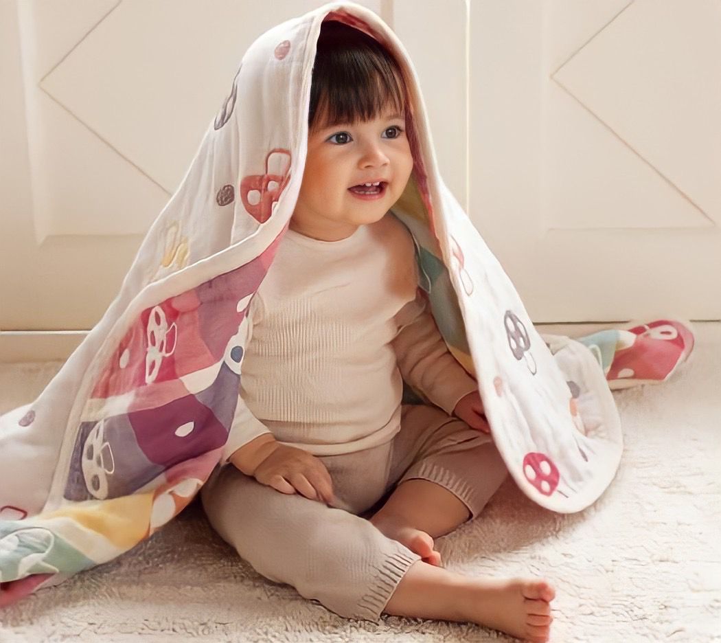 可做為繈褓中的嬰兒包巾使用,外出時也可做為哺乳遮巾及推車披巾、小被子等多種功能,一巾多用非常超值!