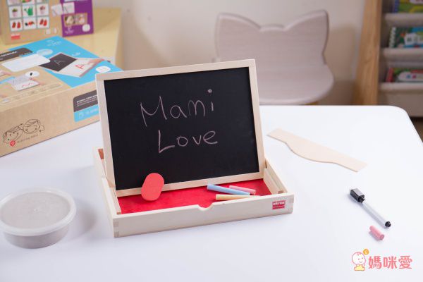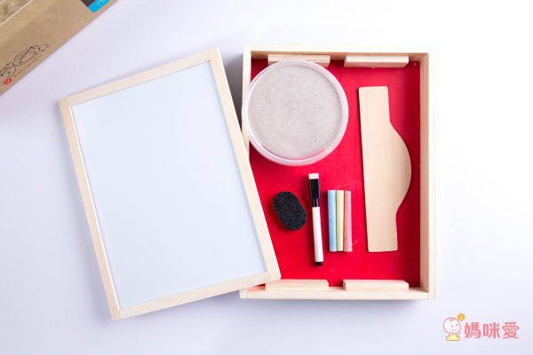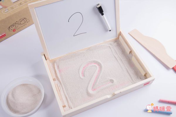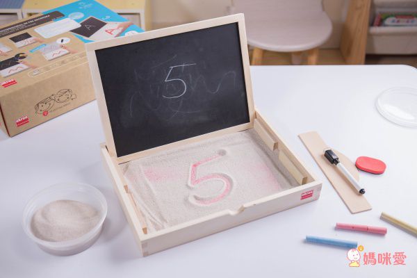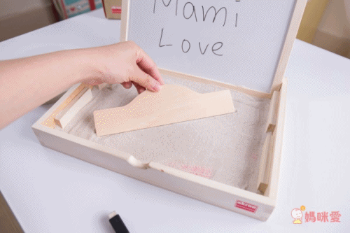 媽咪也可以白板或黑板上寫字,讓寶貝在沙盤裡練習!
