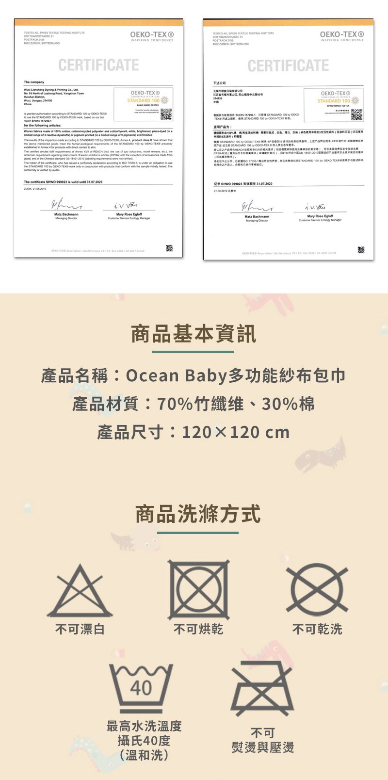 材質:天然有機棉(花紋處)、棉(填充物)、聚酯纖維(內裡透氣網)、EPP 發泡聚丙烯(椅墊)、100% 竹纖維(圍兜兜、口水巾)、Melange布料