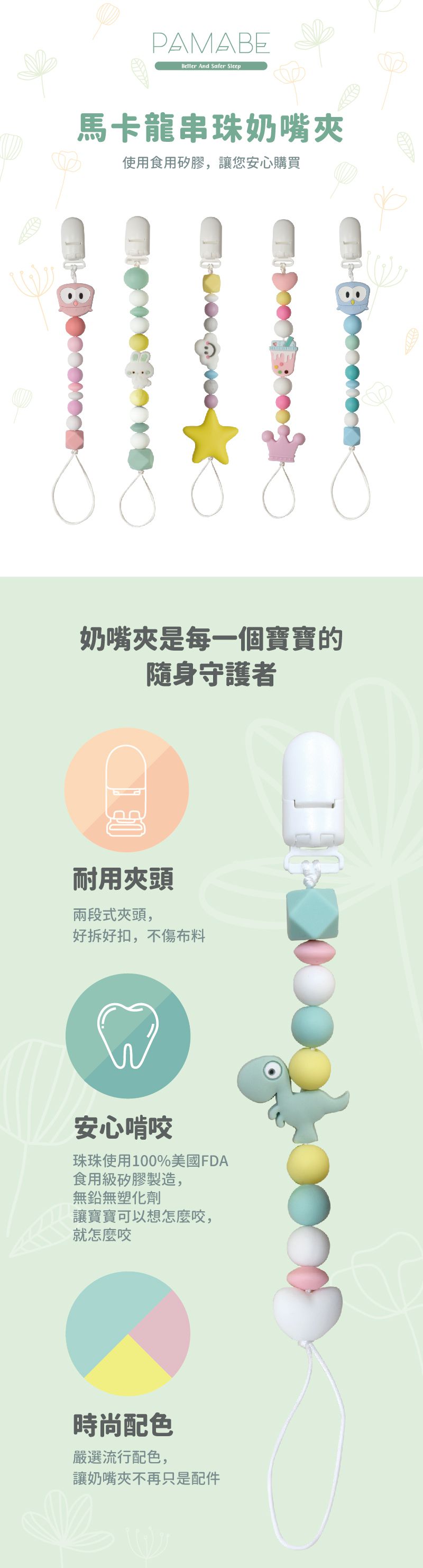 產品材質:串珠-100%食用級矽膠/奶嘴夾-ABS/繩-聚脂纖維